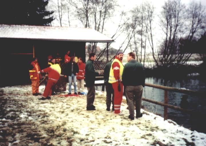 Am 25.02.2001 um 14:05 Uhr alarmiert die Rettungsleitstelle die Wasserwacht Krumbach nach Loppenhausen, gemeldet wurde ein PKW im Weiher. Wir rücken mit 8 Mann in zwei Fahrzeugen und beiden Booten aus. An der Einsatzstelle erwartet uns der Einsatzleiter Rettungsdienst und die Polizei; sie geben uns eine kurze Lagemeldung. Ein Taucher beginnt mit der Suche nach dem Fahrzeug. Kurze Zeit später kommt er mit dem Kennzeichen des PKW wieder an die Oberfläche. Da die Polizei nun sicher ist, dass es sich um den vermissten PKW handelt, können wir mit der Bergung beginnen. Die Taucher messen vorher noch die Strecke aus, wie weit das Fahrzeug im Wasser liegt. Das Stahlseil von einem Abschleppwagen bringen unsere Taucher an dem Fahrzeug an. Der Abschleppdienst zieht das Fahrzeug aus dem Wasser, die Person sitzt noch im PKW. Um 15:30 Uhr ist der PKW an Land. Um 16:00 Uhr ist der Einsatz für uns zu Ende und wir rücken zur Wache ab. 17:00 Uhr Dienstende.