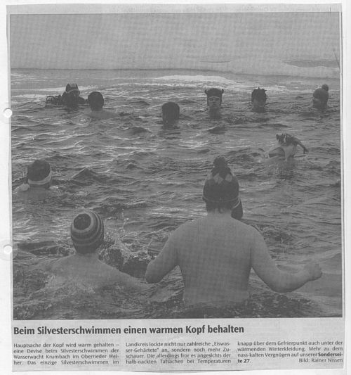 Bericht am 30.12.2005 in den Mittelschwäbischen Nachrichten Geschrieben von Nico-Alexander Harder (KV Günzburg) am 30. Dezember 2005. Veröffentlicht in Zeitungsartikel. Silvesterschwimmen Zurück Weiter Nico-Alexander Harder (KV Günzburg)