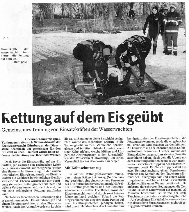 Bericht am 20.01.2006 in den Mittelschwäbischen Nachrichten Geschrieben von Nico-Alexander Harder (KV Günzburg) am 20. Januar 2006. Veröffentlicht in Zeitungsartikel. Eisrettung Zurück Weiter Nico-Alexander Harder (KV Günzburg)