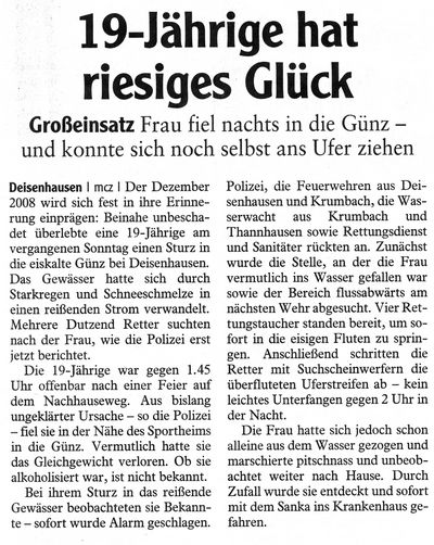 Bericht am 27.12.2008 in den Mittelschwäbischen Nachrichten Geschrieben von Nico-Alexander Harder (KV Günzburg) am 27. Dezember 2008. Veröffentlicht in Zeitungsartikel. Einsatz Zurück Weiter Nico-Alexander Harder (KV Günzburg)