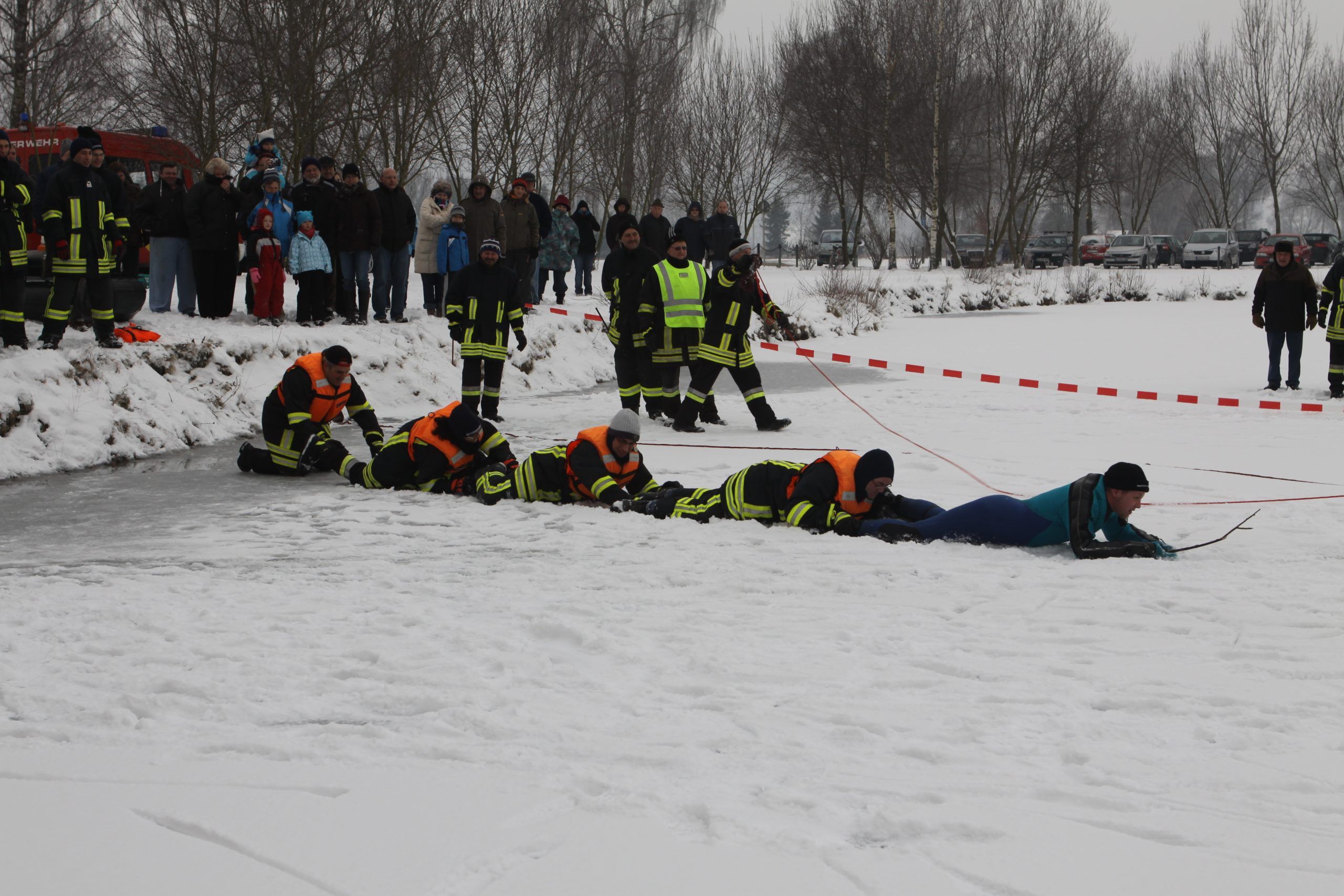 Eisrettungsübung der Schnelleinsatzgruppe zusammen mit der Feuerwehr Burtenbach am 09. Januar 2010