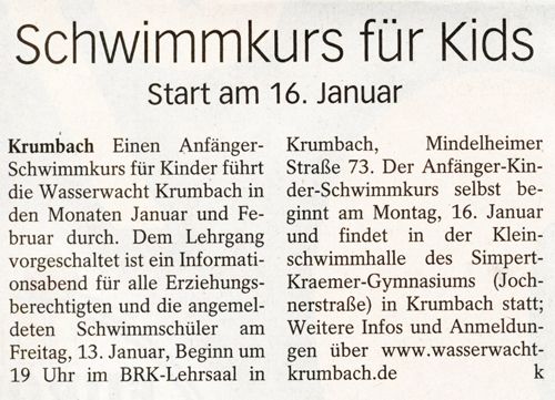 Bericht im „Extra“ am 04.01.2017 Geschrieben von Nico-Alexander Harder (KV Günzburg) am 4. Januar 2017. Veröffentlicht in Allgemein, Schwimmkurs, Zeitungsartikel. Zurück Weiter Nico-Alexander Harder (KV Günzburg)