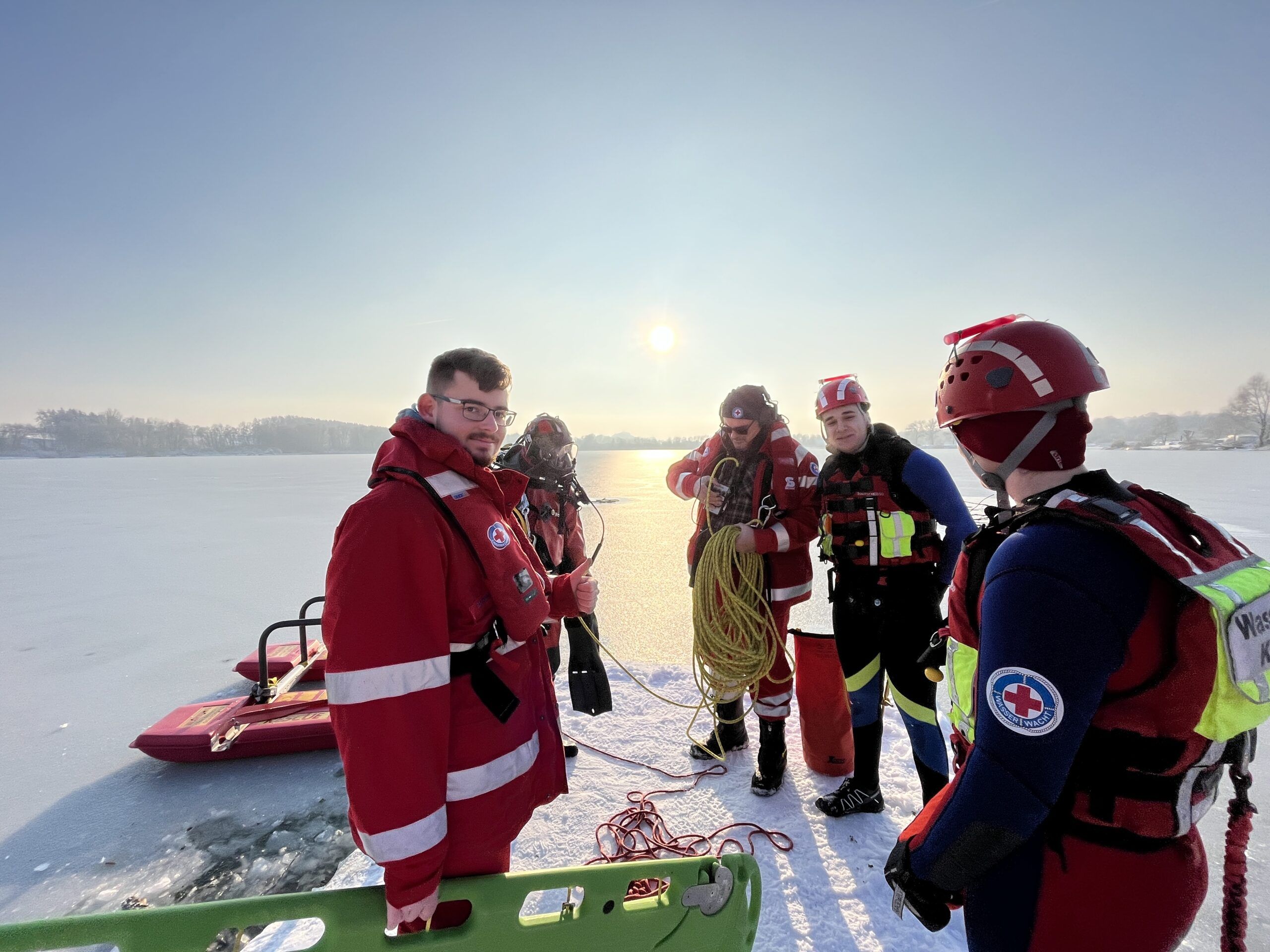 Wasserwacht übt Eisrettung unter realen Bedingungen