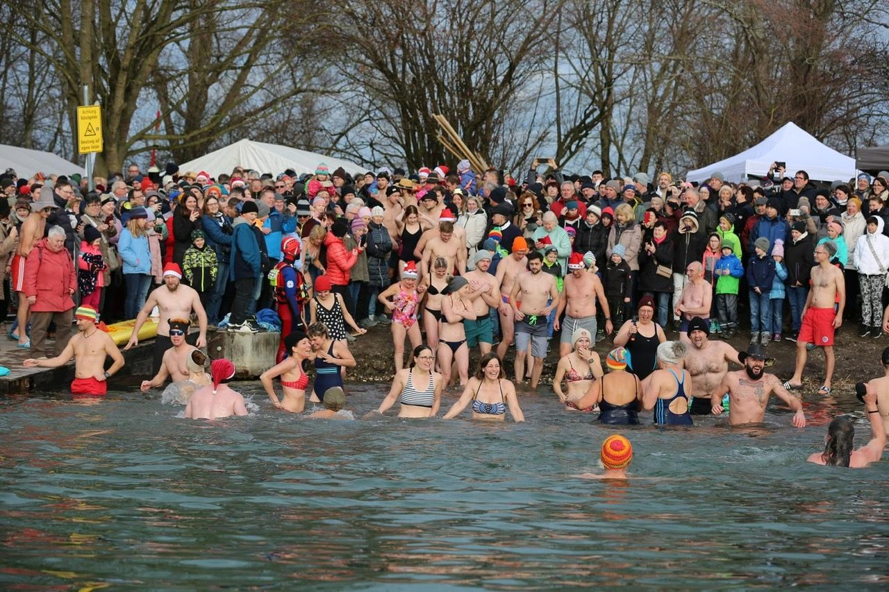 Bei bestem Wetter durften wir am Sylvestertag 2023 über 104 Teilnehmer zum 40ten Sylvesterschwimmen im eiskalten Oberrieder Weiher einladen. Das Wasser hatte angenehme 6 Grad Temperatur. Bei Sonnenschein kamen jung und alt, von nah und fern zusammen um das alte Jahr gebührend mit einer Runde Schwimmen abzurunden.
