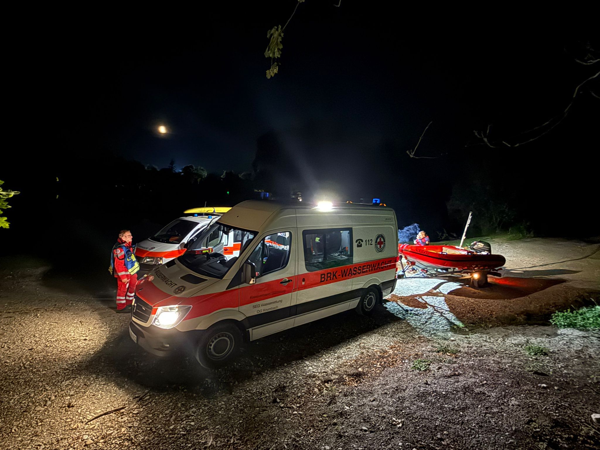 Die beiden anliegenden Gewässer wurden durch uns mit Sonar und Wasserrettern abgesucht, bis das Mädchen schlafend und unverletzt in einer Wiese gefunden wurde. Nach der Einsatznachbesprechung war der Einsatz um 4:00 Uhr beendet.