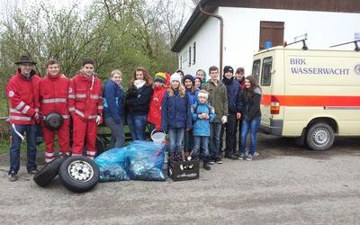 Wasserwachtjugend räumt am Oberrieder Weiher auf
